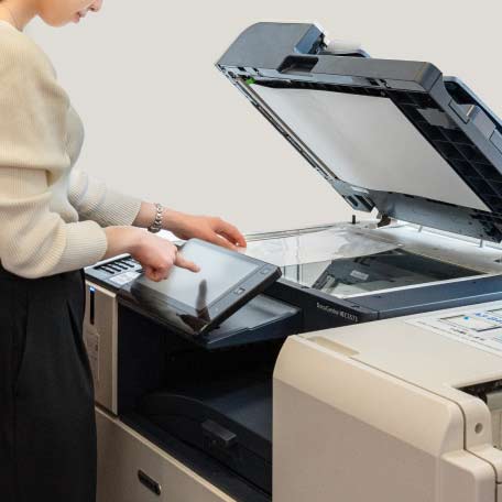 チラシ印刷、ポスター印刷などの印刷サービスはもちろん、製本加工、パネル加工、ラミネート加工などの後加工も広くサポートしています。