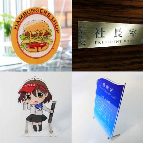 アクセア甲府昭和店では、アクリルフィギュア、アクリルフォトフレーム、名札・ネームプレートなどのオリジナル制作も可能。