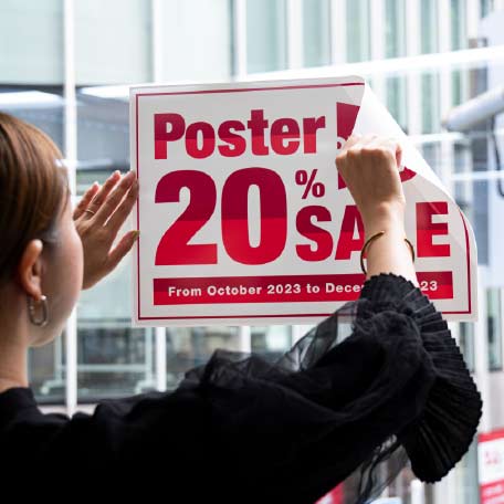 店内掲示やイベント、屋外掲示に最適なポスター印刷・大判出力にも対応。